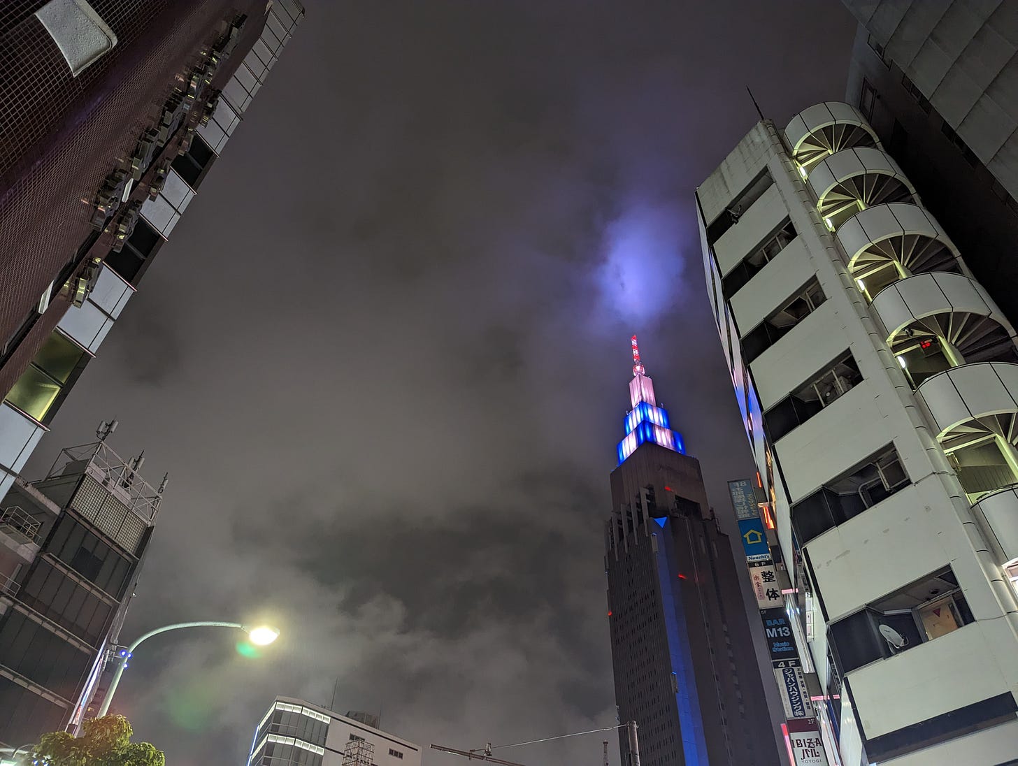 NTTドコモ代々木ビル、通称ドコモタワーの写真です。ひさしぶりに代々木を訪れたら「ほぼ新宿のれん街」という飲食店街が出現していておどろきました。今はこんなふうになっているのですねぇ。