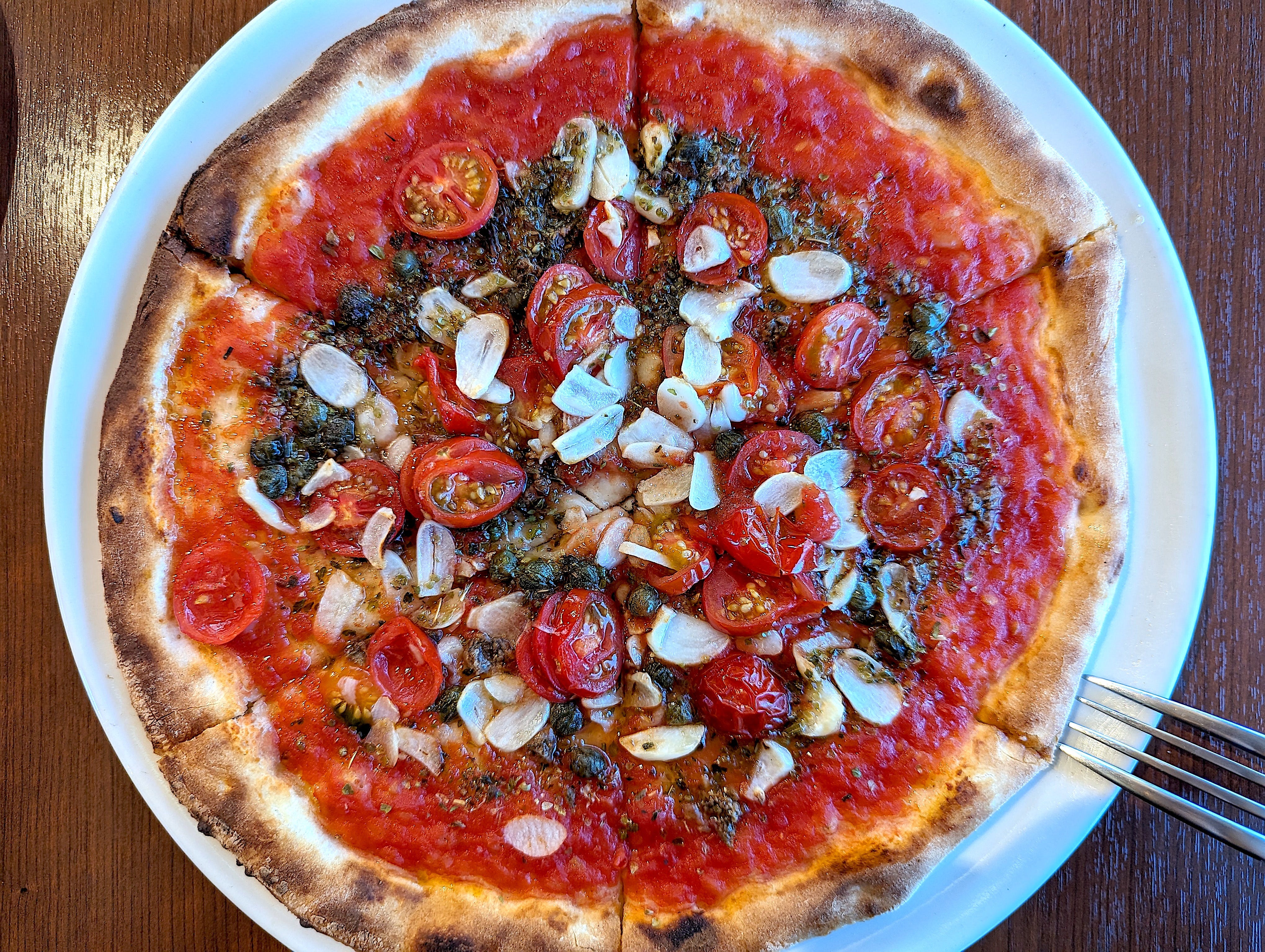 ナポリピッツァTASUKUというお店で食べたマリナーラ。とってもおいしくて妻もよろこんでいました。またピッツァを食べたくなったら訪れましょう。