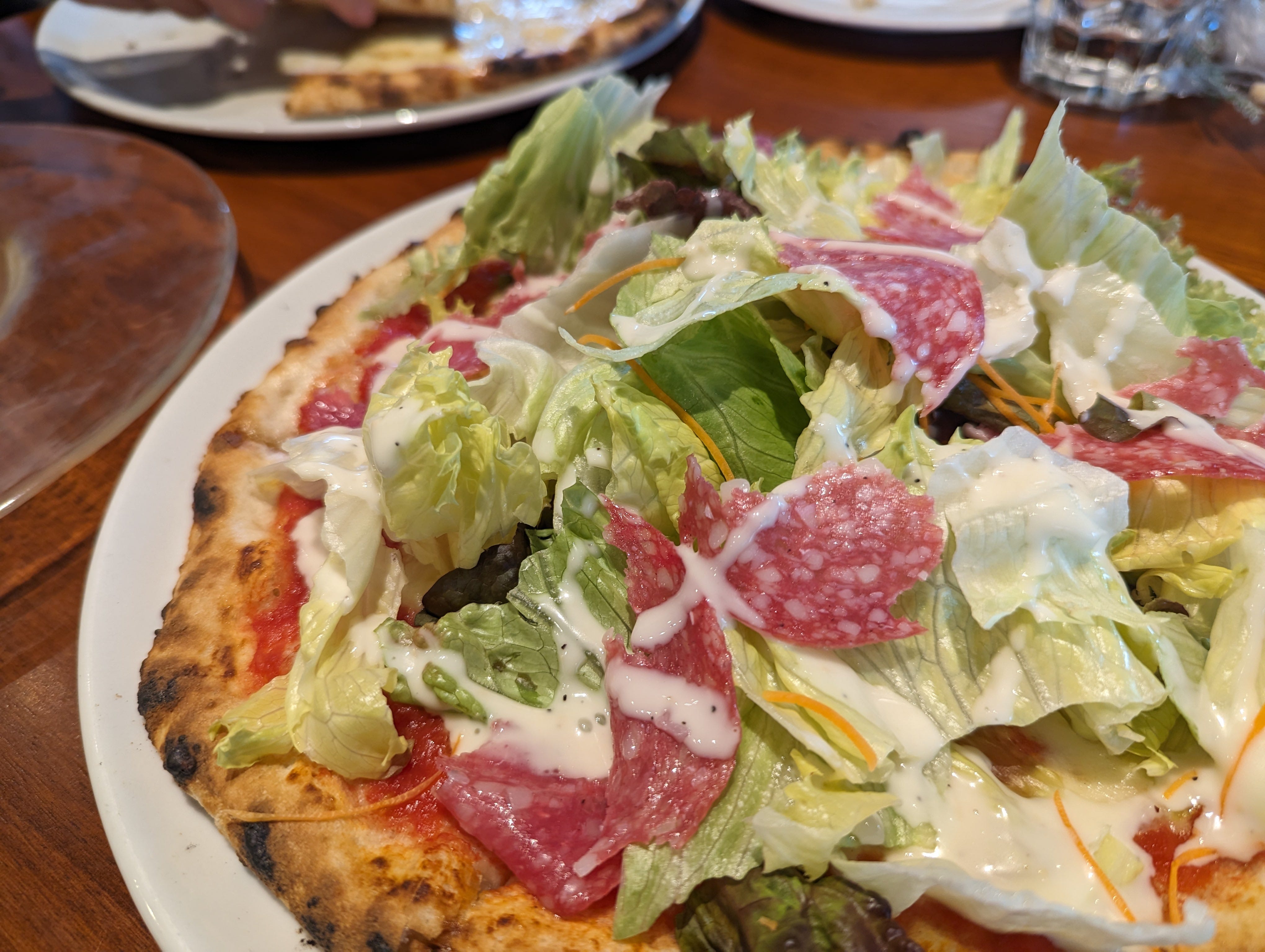 安曇野の野菜がたっぷり乗ったサラダ・ピッツァがおいしかったです。