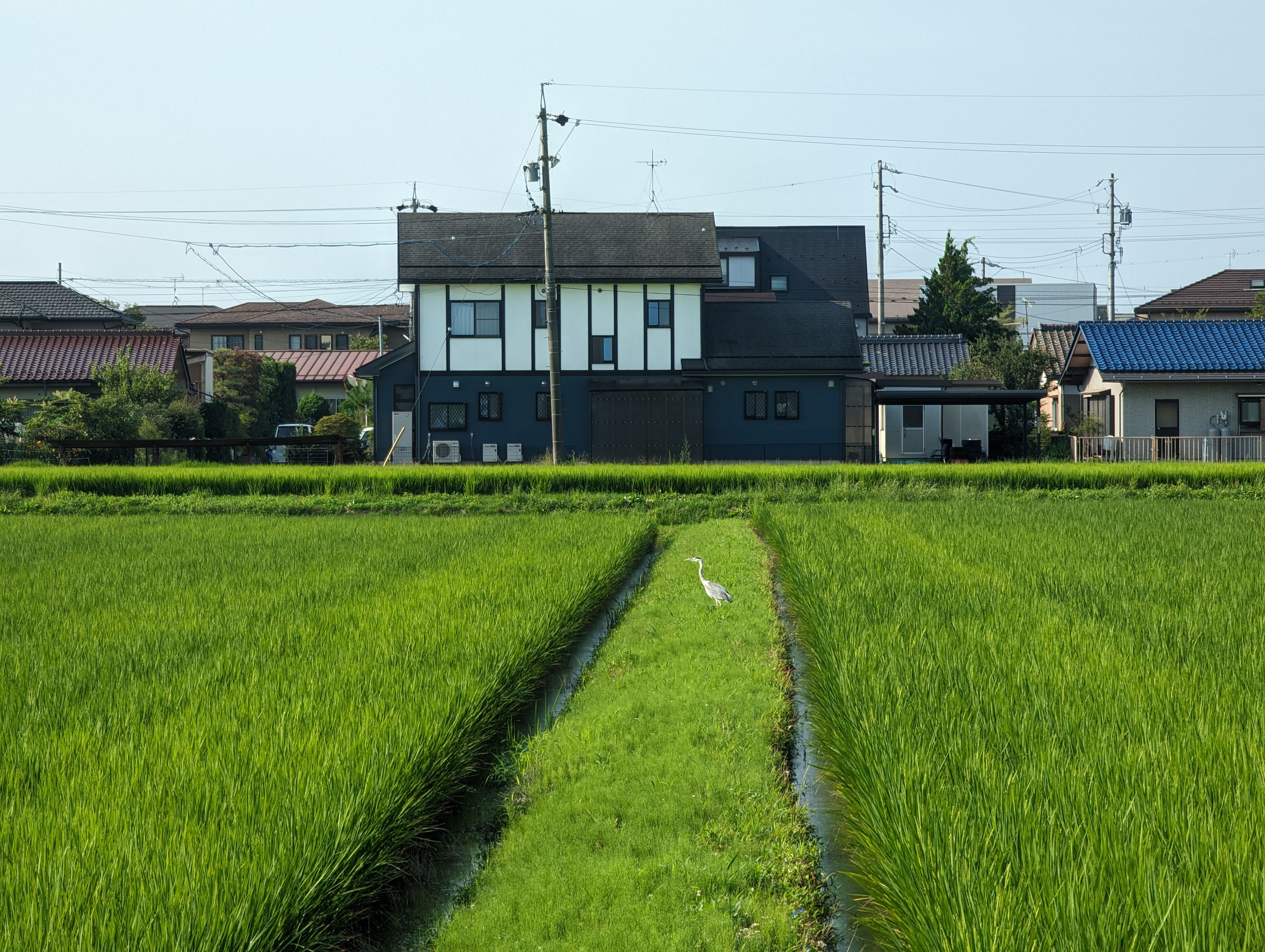 朝のお散歩のときにアオサギを見かけたので撮りました。田んぼの間にいます。いま、日本でいちばん話題の鳥でしょうか。